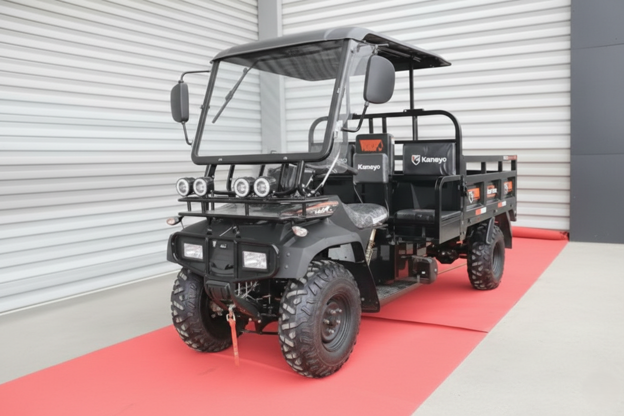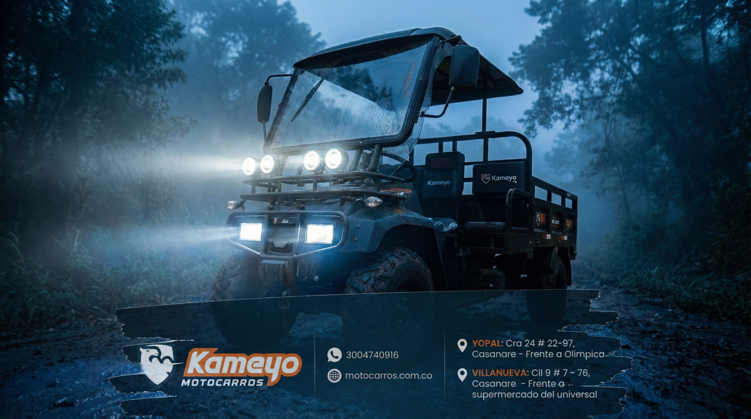 El KAMEYO AGR300 representa el máximo nivel de rendimiento en la línea de cuatriciclos utilitarios. Diseñado en Colombia para superar los desafíos más complejos, este vehículo combina una tracción integral doble con una capacidad de carga excepcional, convirtiéndose en el socio más robusto para la industria, el agro y la construcción.